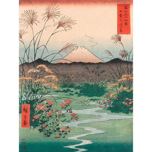 Otsuki Plain in Kai Province Black Modern Wood Framed Art Print by Ando, Hiroshige