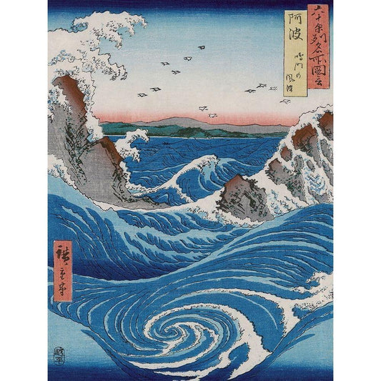 Naruto Whirlpools, Awa Province Black Modern Wood Framed Art Print by Hiroshige, Ando