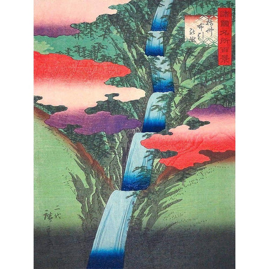 The Nunobiki Waterfall in Settsu Province Black Modern Wood Framed Art Print by Hiroshige, Ando