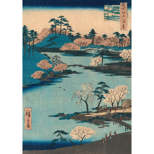 Open garden at Fukagawa Hachiman Shrine Black Modern Wood Framed Art Print by Hiroshige, Ando