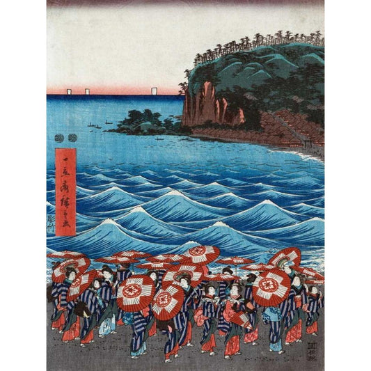 Opening celebration of Benzaiten I Black Modern Wood Framed Art Print by Hiroshige, Ando