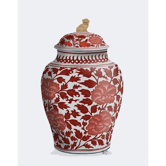 Chinoiserie Vase Golden Lion Red Black Modern Wood Framed Art Print by Fab Funky
