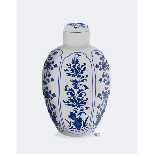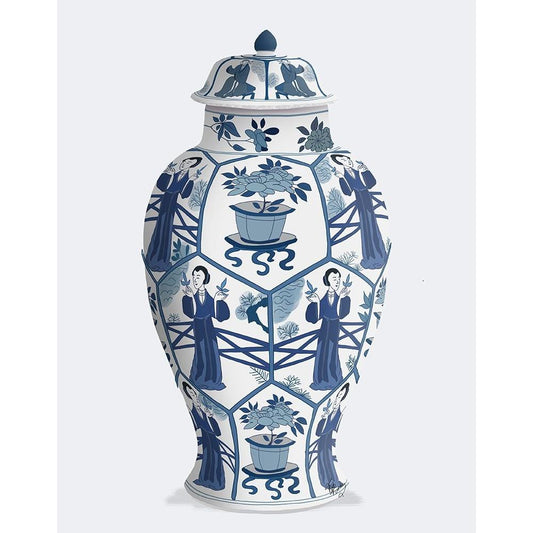 Chinoiserie Vase Leaf Picker Blue Black Modern Wood Framed Art Print by Fab Funky