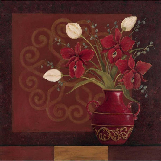 Orchids in Red Black Modern Wood Framed Art Print by Moulton, Jo