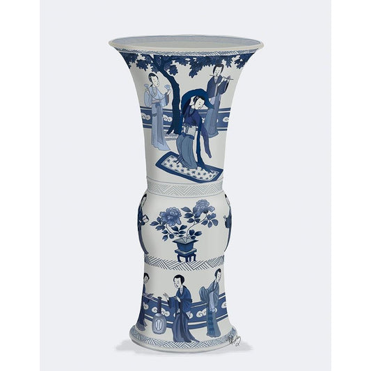 Chinoiserie Vase Dancer Blue Black Modern Wood Framed Art Print by Fab Funky