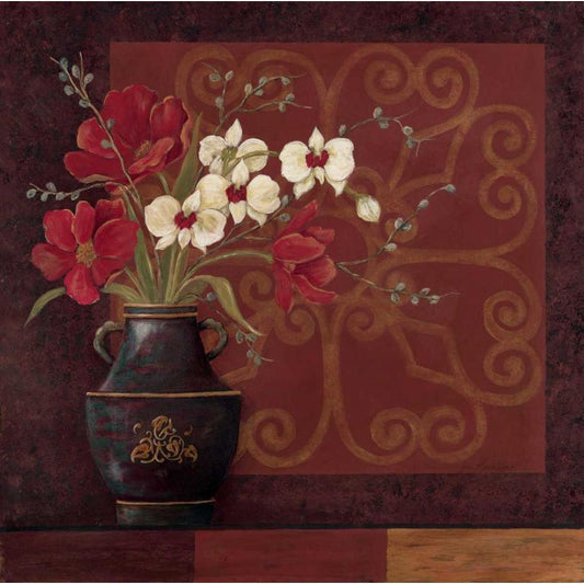 Chinoiserie Vase Vine Red Black Modern Wood Framed Art Print by Fab Funky