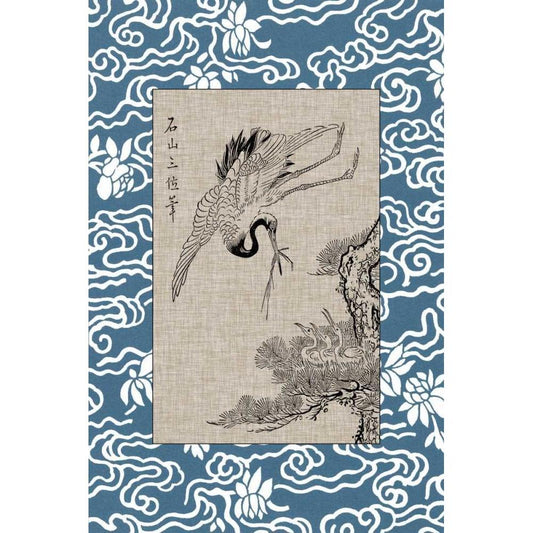 Crane and Lotus Panel II Black Modern Wood Framed Art Print by Racinet