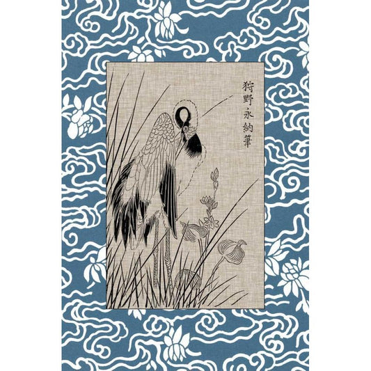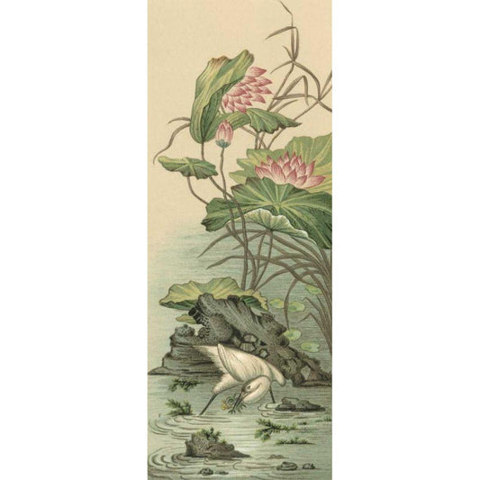 Crane and Lotus Panel I Black Modern Wood Framed Art Print by Racinet
