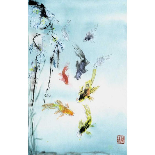 Playful Koi I Black Modern Wood Framed Art Print by Bryant, Rebecca