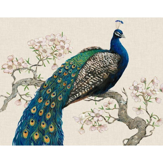 Peacock and Blossoms II Black Modern Wood Framed Art Print by OToole, Tim