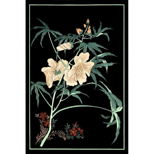 Oriental Bird Silk II Black Modern Wood Framed Art Print by Unknown
