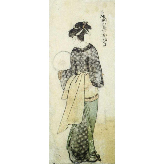 Back View of Ohisa Black Modern Wood Framed Art Print by Utamaro