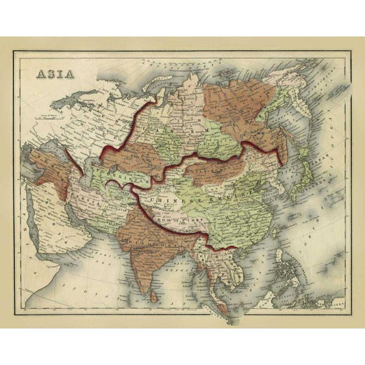 Antique Map of Asia Black Modern Wood Framed Art Print by Johnson