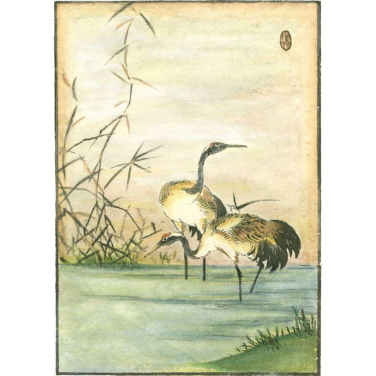 Oriental Cranes II Black Modern Wood Framed Art Print by Vision Studio