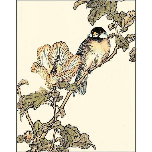 Oriental Bird on Branch II Black Modern Wood Framed Art Print by Vision Studio