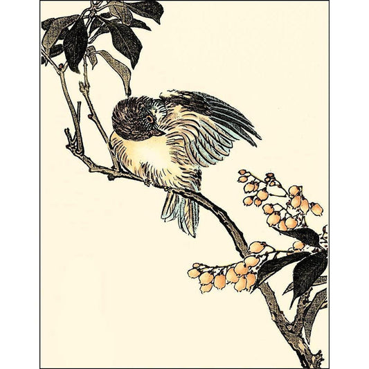 Oriental Bird on Branch III Black Modern Wood Framed Art Print by Vision Studio