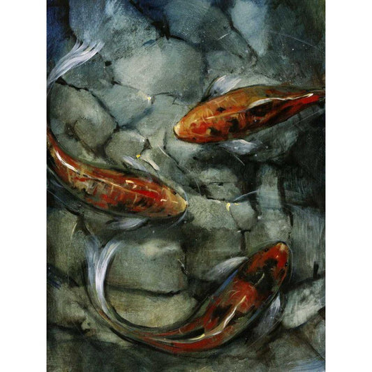 Tres Koi I Black Modern Wood Framed Art Print by OToole, Tim