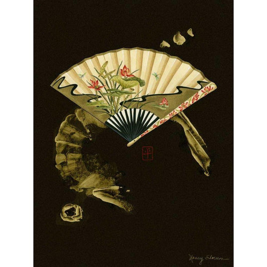 Oriental Fan II Black Modern Wood Framed Art Print by Slocum, Nancy