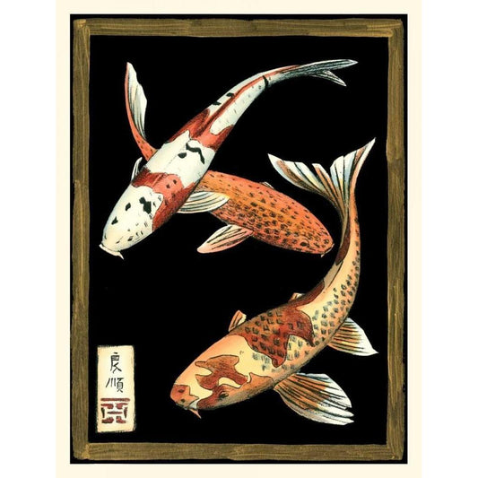 Koi Fish on Black I Black Modern Wood Framed Art Print by Zarris, Chariklia