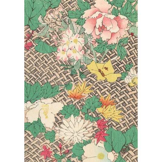Japanese Floral Design II Black Modern Wood Framed Art Print by Furuya, Korin