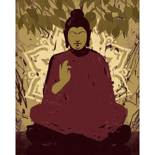Buddha on Blue II Black Modern Wood Framed Art Print by Warren, Annie