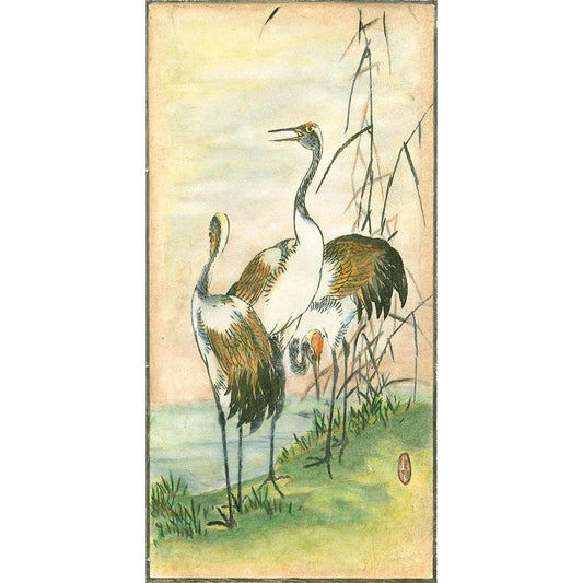 Custom Oriental Cranes I Black Modern Wood Framed Art Print by Vision Studio