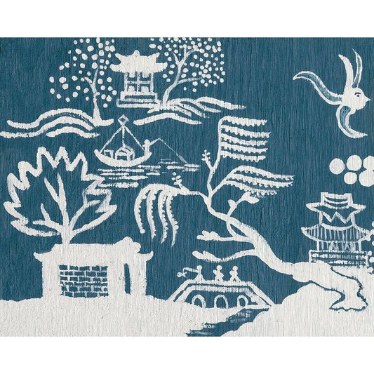 Indigo Carp Katagami II Black Modern Wood Framed Art Print by Vision Studio