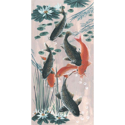 Traditional Koi Pond I Black Modern Wood Framed Art Print by Wang, Melissa