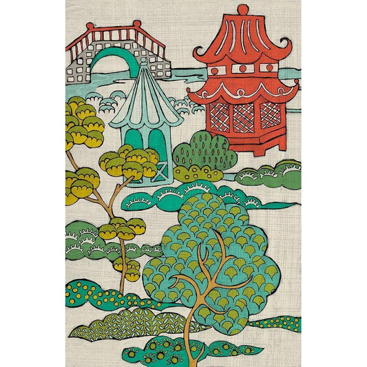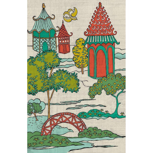 Pagoda Landscape I Black Modern Wood Framed Art Print by Zarris, Chariklia