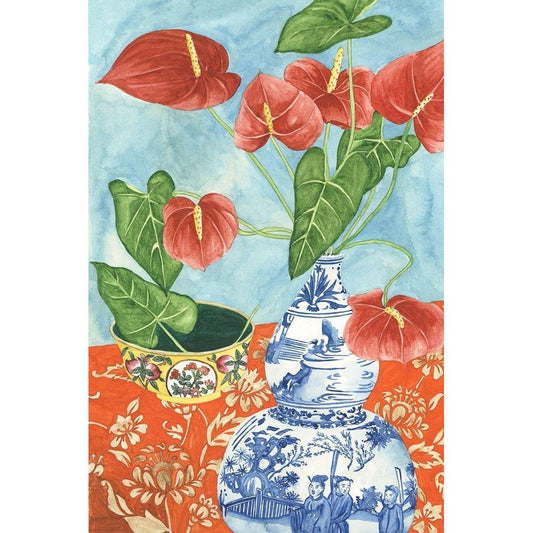 Asian Urn in Blue and White I Black Modern Wood Framed Art Print by Vision Studio