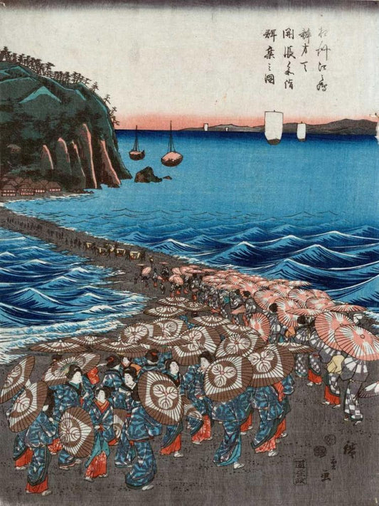 Opening celebration of Benzaiten I White Modern Wood Framed Art Print with Double Matting by Hiroshige, Ando