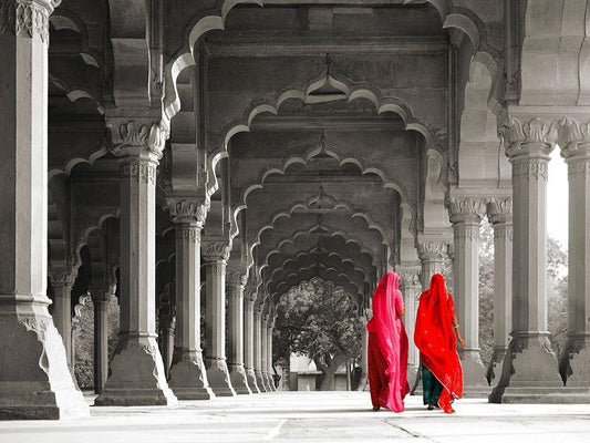 Women in traditional dress, India (BW) White Modern Wood Framed Art Print with Double Matting by Pangea Images