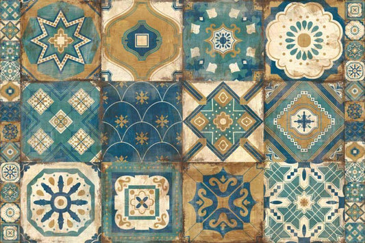 Moroccan Tiles Blue White Modern Wood Framed Art Print with Double Matting by Hilsaca, Cleonique