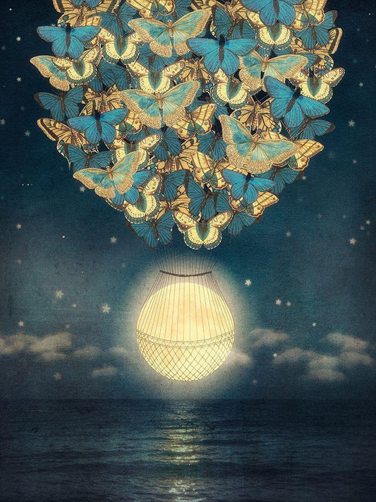 The Moon Carries Me Away White Modern Wood Framed Art Print with Double Matting by Flores, Paula Belle