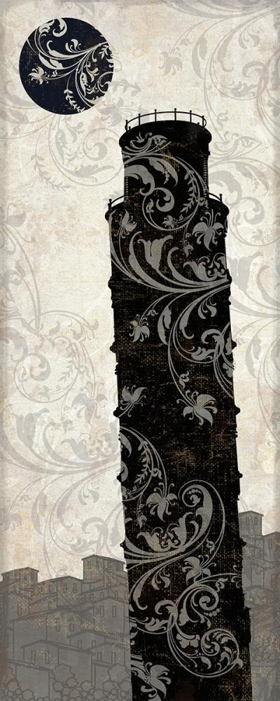 Moon over Pisa White Modern Wood Framed Art Print with Double Matting by Color Bakery