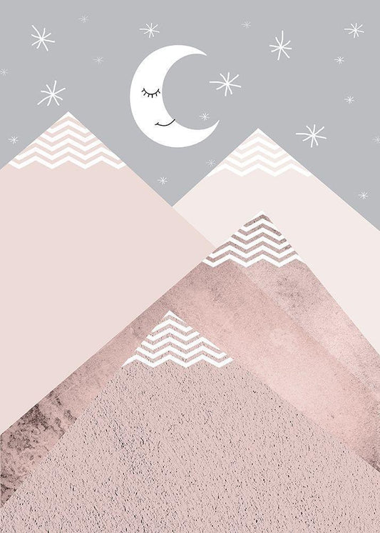 Blush Pink Grey Mountains 2 White Modern Wood Framed Art Print with Double Matting by Urban Epiphany