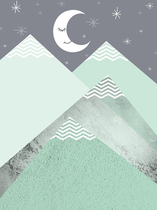 Mint Green Mountains 1 White Modern Wood Framed Art Print with Double Matting by Urban Epiphany