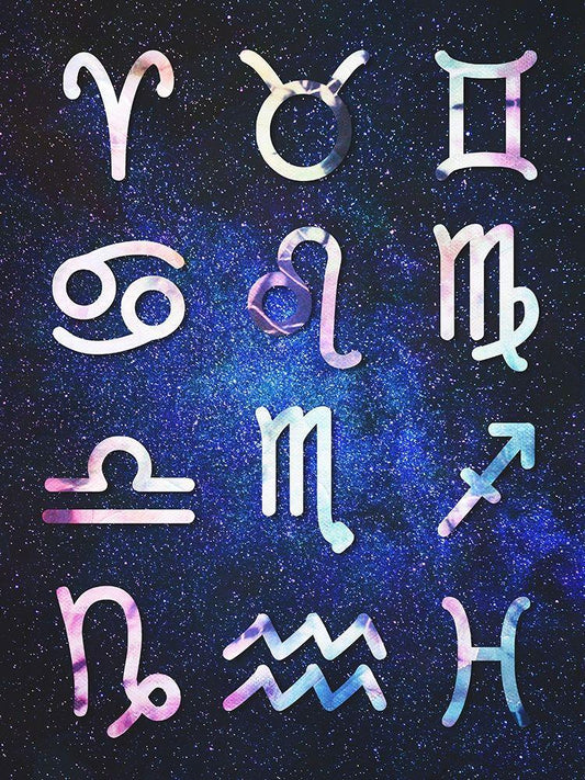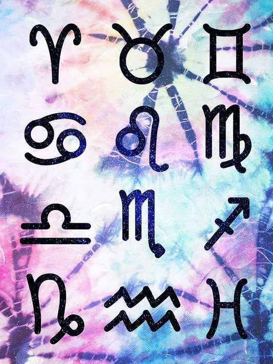 Symbol Zodiac Tie Dye White Modern Wood Framed Art Print with Double Matting by Villa, Milli