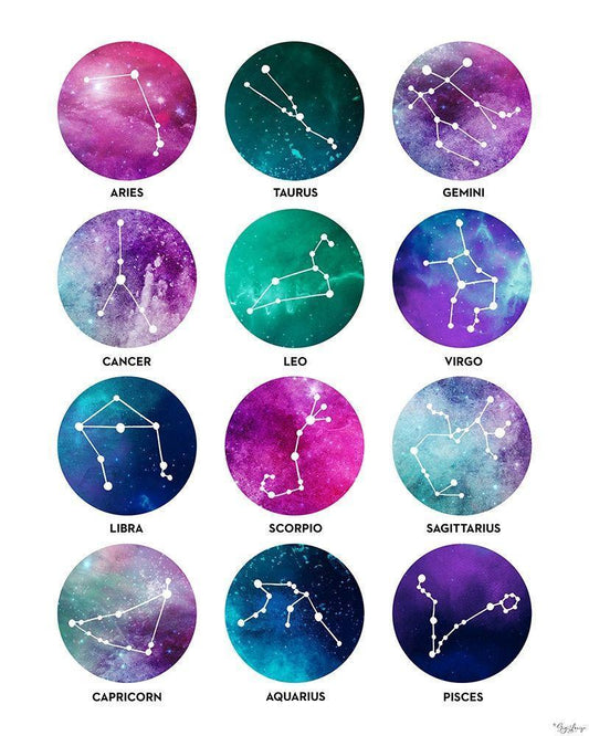 Zodiac White Modern Wood Framed Art Print with Double Matting by Louise, Gigi