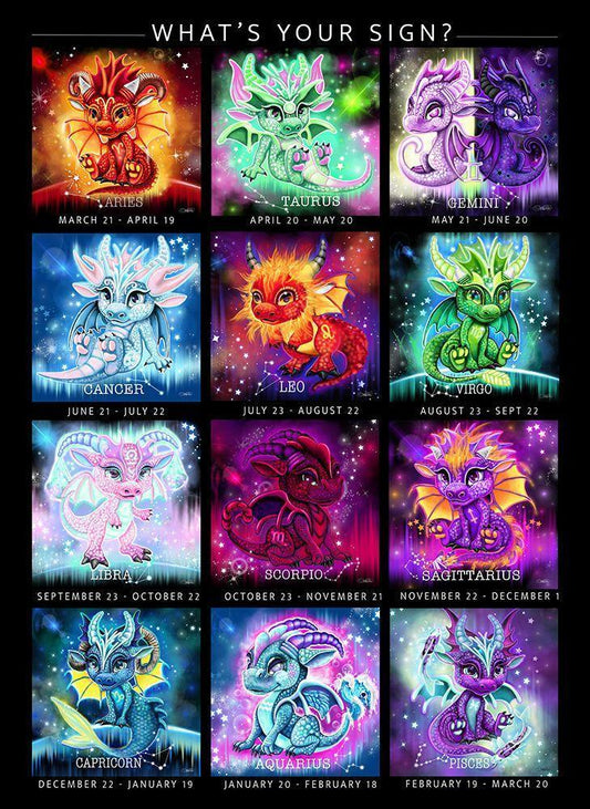 The Zodiacs Lil Dragonz White Modern Wood Framed Art Print with Double Matting by Sheena Pike Art