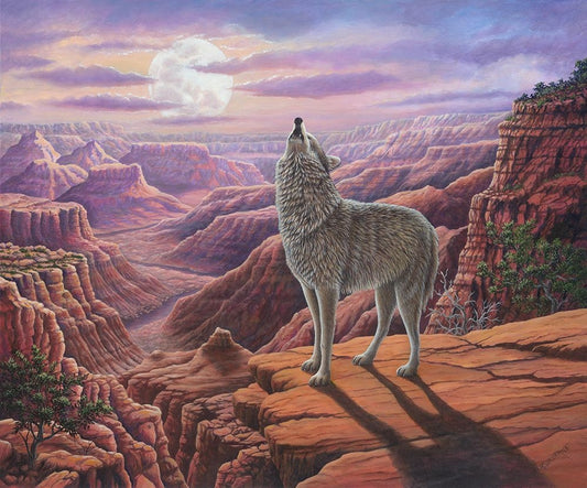 Howling Wolf White Modern Wood Framed Art Print with Double Matting by Wavra, Robert