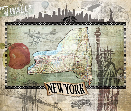 Vintage State NewYork White Modern Wood Framed Art Print with Double Matting by LightBoxJournal