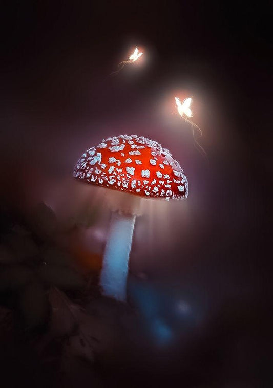 Mushroom Magic White Modern Wood Framed Art Print with Double Matting by Love Grams