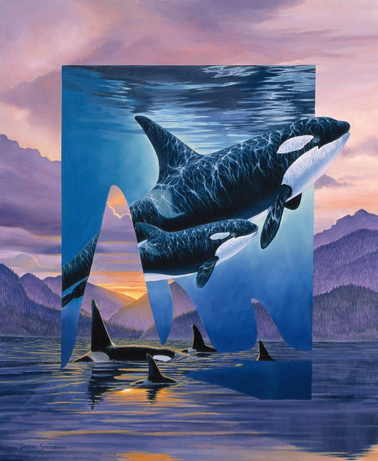 Orca Reflections White Modern Wood Framed Art Print with Double Matting by Stevenson, Graeme