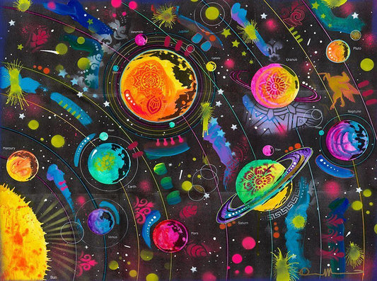 Solar System White Modern Wood Framed Art Print with Double Matting by Dean Russo Collection