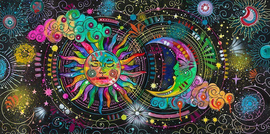 Yin Yang - Sun and Moon White Modern Wood Framed Art Print with Double Matting by Dean Russo Collection