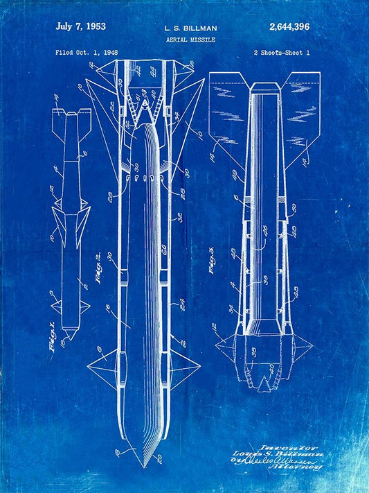 PP384-Faded Blueprint Aerial Missile Patent Poster White Modern Wood Framed Art Print with Double Matting by Borders, Cole