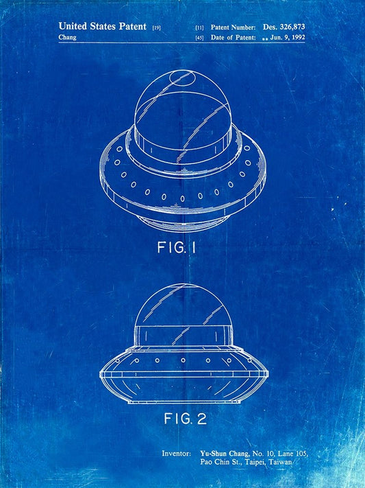 PP667-Faded Blueprint Flying Saucer Poster White Modern Wood Framed Art Print with Double Matting by Borders, Cole