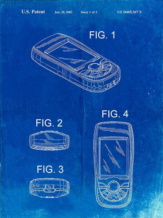 PP862-Faded Blueprint GPS Device Patent Wall Art Poster PP862 White Modern Wood Framed Art Print with Double Matting by Borders, Cole