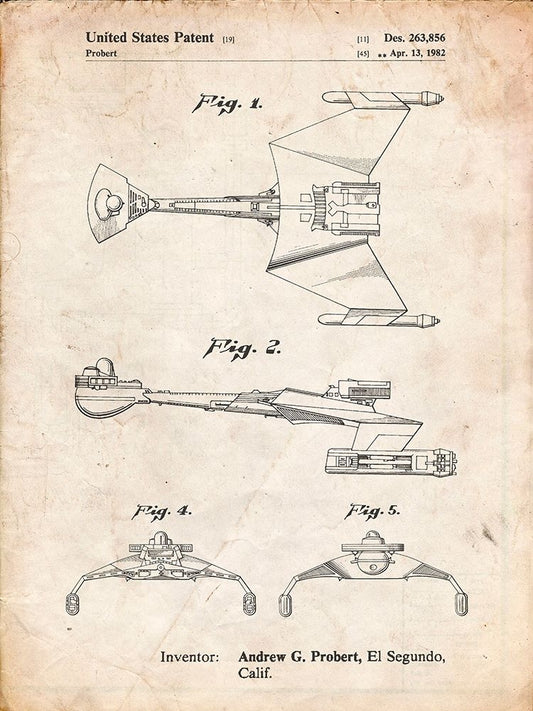 PP1053-Vintage Parchment Star Trek Klingon Empire Starship Poster White Modern Wood Framed Art Print with Double Matting by Borders, Cole